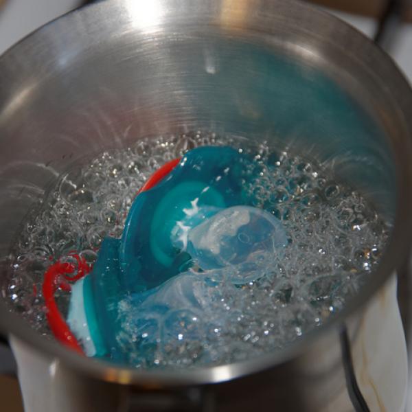 - Pon 2 cucharadas de agua en la caja, mete el chupete y llévala al microondas 1 min a máx. 800 W. Esteriliza de esta forma solo chupetes de silicona.