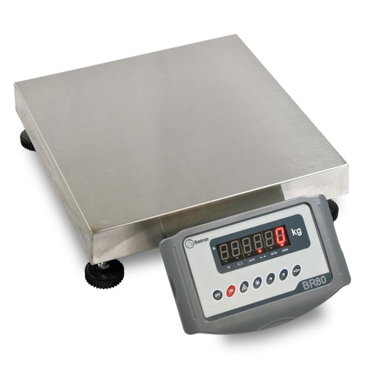 - Báscula industrial con plato en acero inoxidable de gran resistencia. Capacidad de 60 kg con plato de pesada de dimensiones 500 x 400 mm.